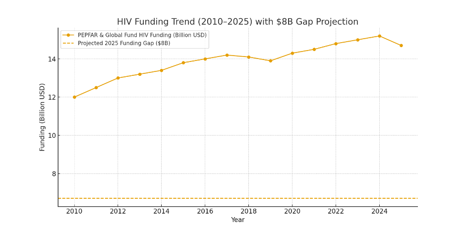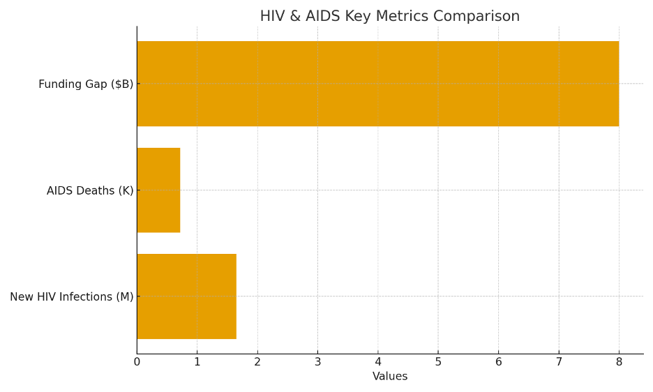 Sub-Saharan Africa bears 77% of new infections, disproportionately affecting adolescent girls and young women. Emerging hotspots, including the Philippines (57% case increase in Q1 2025) and low-prevalence regions, indicate shifting epidemiology. Funding constraints, exacerbated by PEPFAR suspensions and an $8 billion shortfall against a $29.3 billion annual need, compound risks. This review synthesizes 2025 data to evaluate progress, interventions, and barriers, employing a structured analysis informed by UNAIDS Global AIDS Update 2025 and Global Burden of Disease (GBD) studies.
